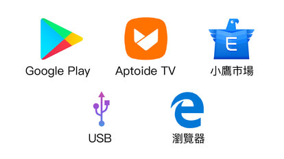 Google Play、Aptoide TV、小鷹市場、USB、瀏覽器,想看什麼裝什麼